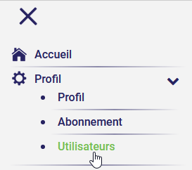 Lorsque vous vous inscrivez dans l'AssisTemps, vous êtes seul dans votre groupe. Pour ajouter des membres à votre groupe, allez dans le Menu - Profil - Utilisateurs :