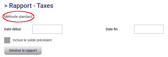 Et voilà, votre méthode de taxation est mise à jour! Elle s'applique aux rapports T2125/état des résultats et au rapport de taxes. Elle inclut également le crédit d'impôt de 1%. La méthode de taxation sélectionnée est inscrite sur le rapport de taxes :