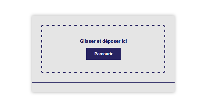 Lorsque vous voulez ajouter un fichier dans un dossier client, vous pouvez soit les sélectionner en cliquant dans le rectangle pointillé ou le glisser et le déposer (drag and drop) dans ce même rectangle pointillé :