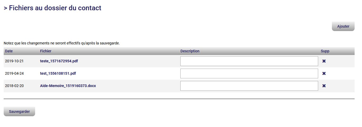 Dans cette fenêtre, vous pouvez consulter les fichiers qui sont dans le dossier client, ajouter une description au fichier et même les supprimer s'ils ne sont plus d'actualité :