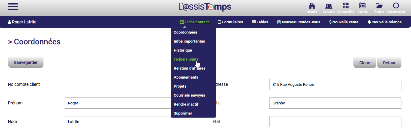 Par la suite, vous devez sélectionner Fichiers joints dans la Fiche contact :