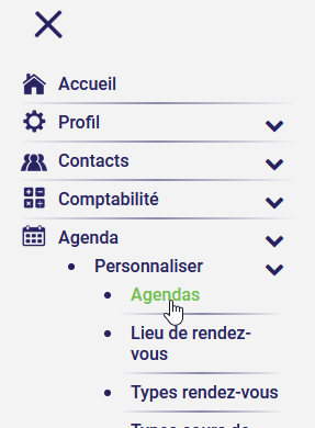 Pour activer la synchronisation avec Google, vous n'avez qu'à accéder à la gestion des agendas via ce menu :