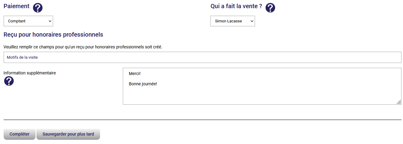 Enfin, vous pourrez cliquer le bouton Compléter pour sauvegarder votre facture. Une fois sauvegardée, vous pourrez l'envoyer par courriel et la sauvegarder au format PDF. Ainsi, vous économiserez du papier!