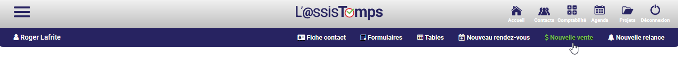 Si vous êtes dans le dossier de votre client, vous pouvez cliquer sur le bouton Nouvelle vente dans le sous-menu bleu. De cette façon, les coordonnées de votre client apparaîtront automatiquement sur la facture!
