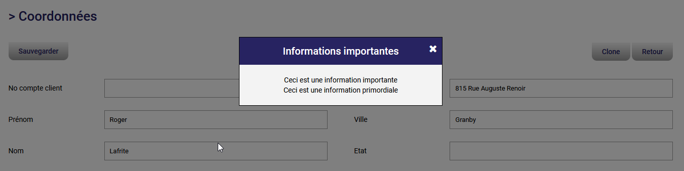 La prochaine fois que vous ouvrirez le dossier de ce client, les informations importantes que vous avez inscrites dans son dossier vous apparaîtront sous forme d'un pop-up :